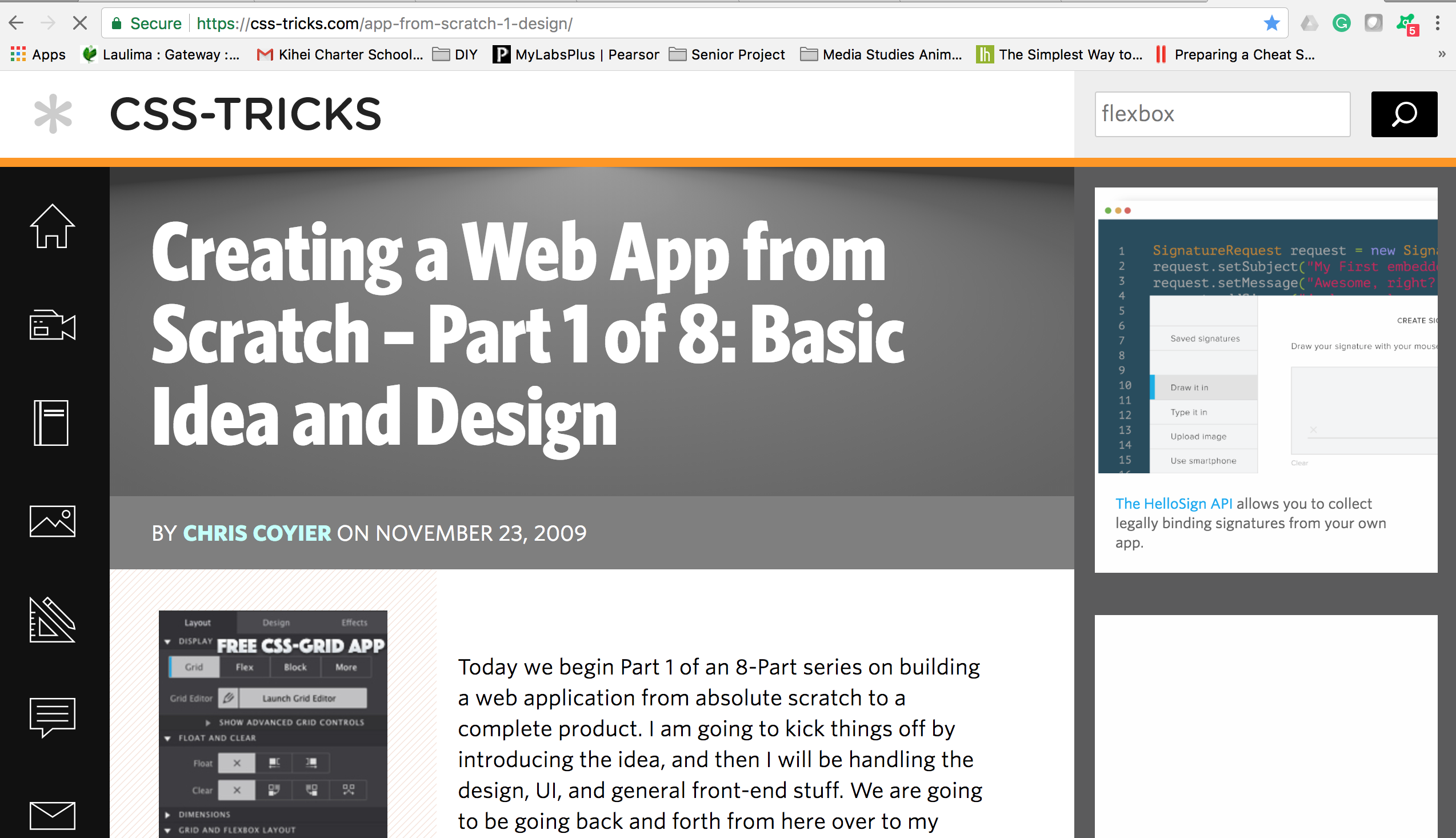Week of Tuesday 12/26-Will have gotten through the entire Creating a Web App from Scratch guide. Should have a basic (non precious) prototype of the web app that I can beautify, add curriculum + media to, and modify.