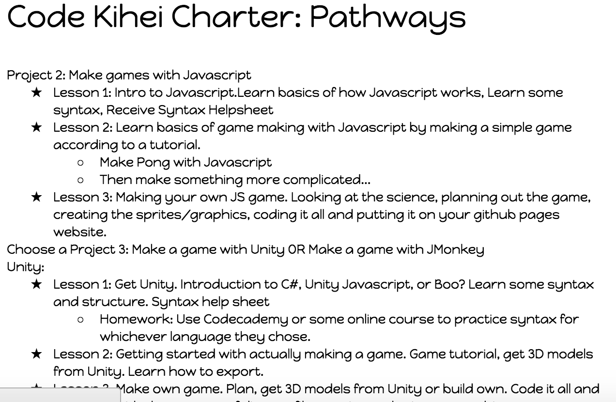 Working on finishing basic curriculum outlines for all pathways (week of Tuesday 12/5).